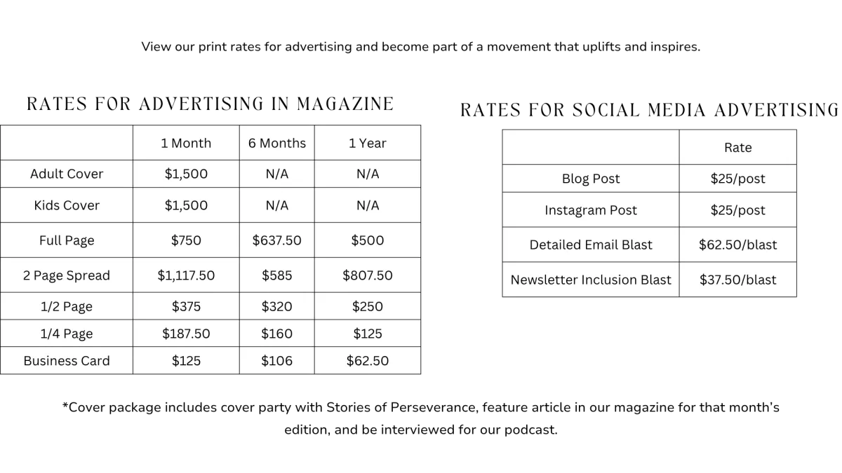 ✔ Brand Alignment – Showcase your business alongside powerful stories of triumph, resilience, and empowerment—reinforcing your company’s values and mission.